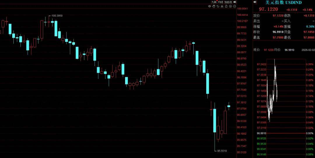 再看看美元指数,虽然凯文沃什的主张是维持“强势美元”,最近几天美元指数也确实反弹了一些,但就一些,还没有涨回去1月19日那个高点呢,就更不用说去年11月那个高点了。