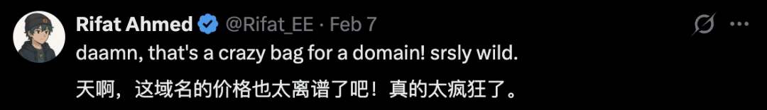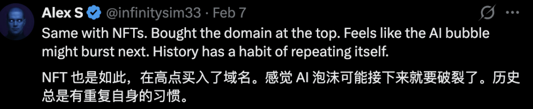 还有网友从Marszalek的交易中,联想起那些在高点买入域名的投机行为,认为这只是一些投资者又一次追逐AI热点的投机行为。