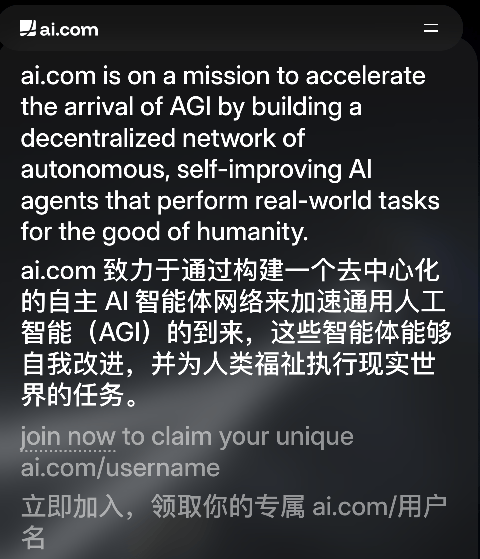 像AI.com这样的资产,没有替代品。一生只有一次。