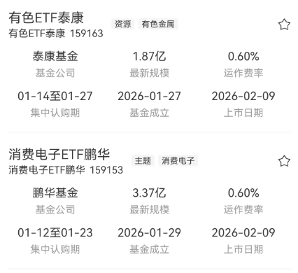 下周,有色ETF泰康(159163)、消费电子ETF鹏华(159153)等4只新产品上市,关于指数底层资产的详细信息,大伙可以在(ETF组合宝)中查看: