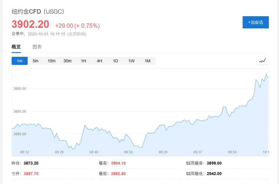 美国政府关门的消息在全球市场引发了连锁反应,避险情绪明显升温。