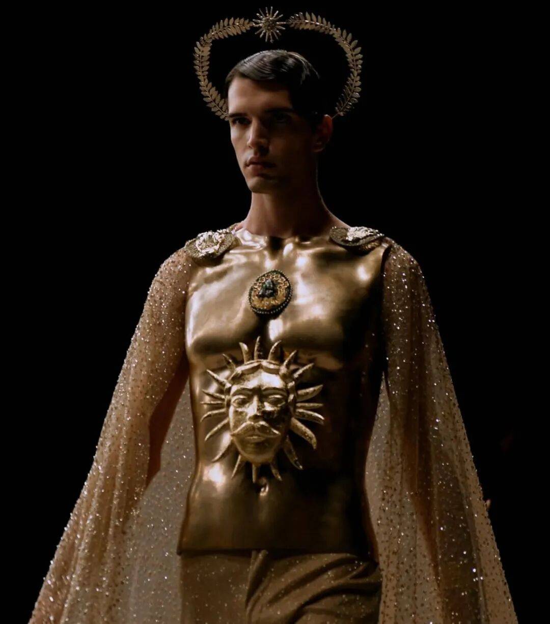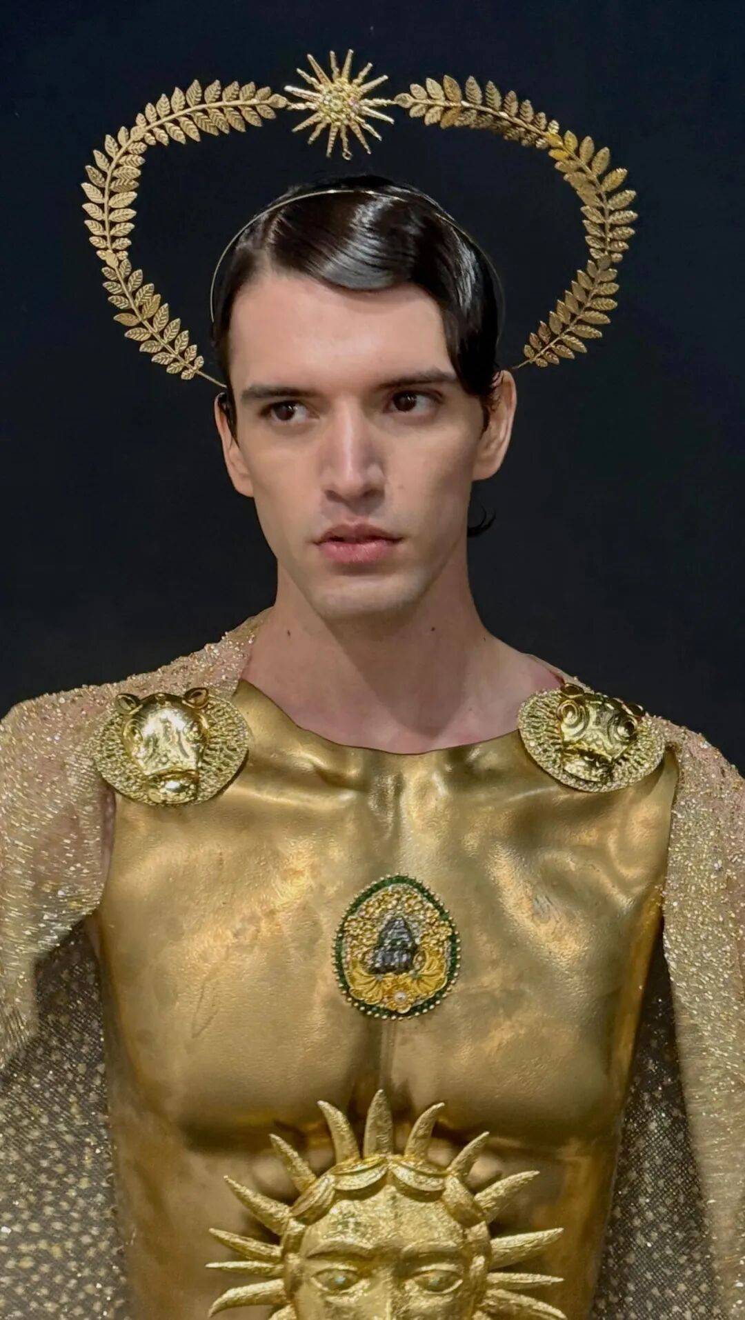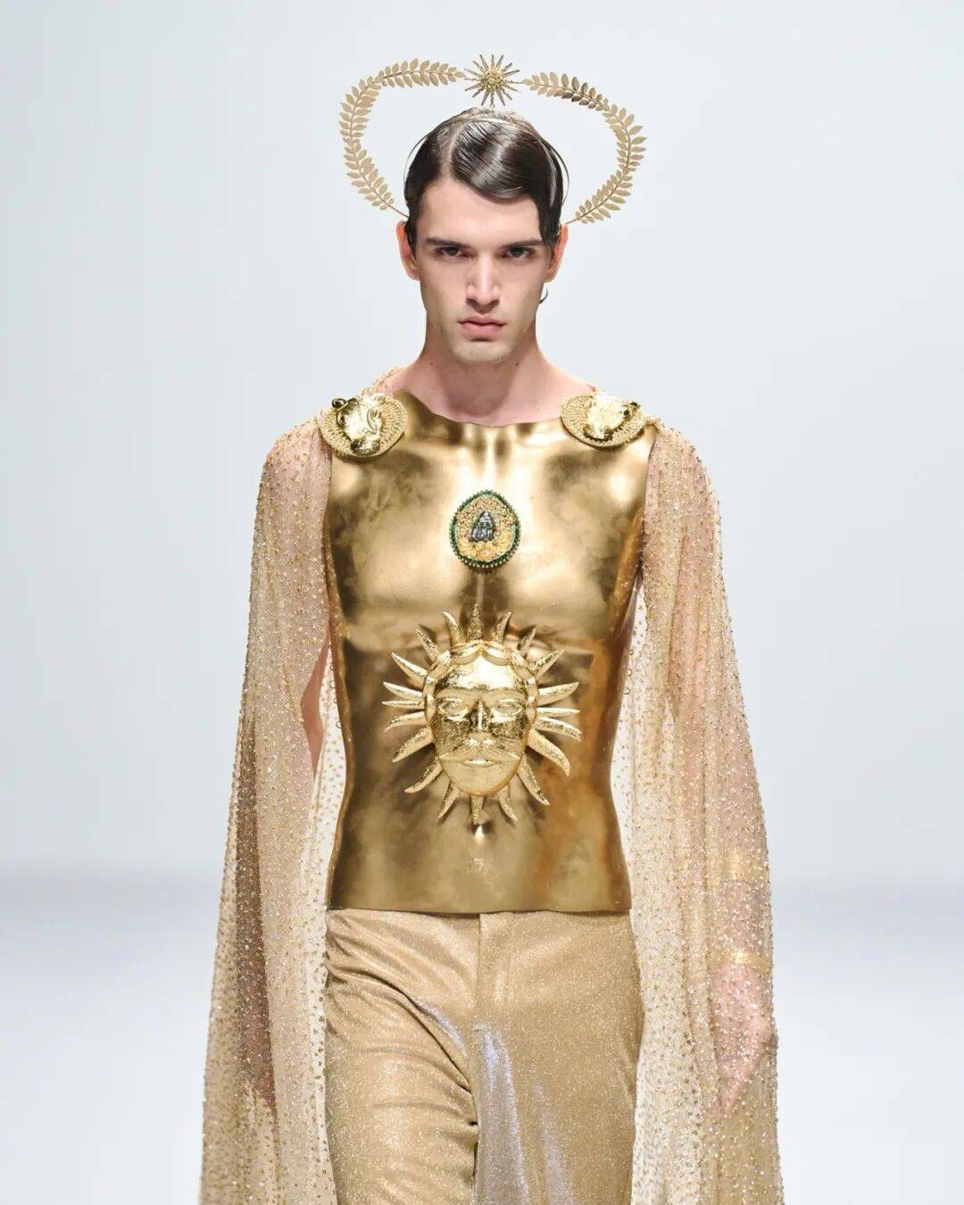 尼加拉瓜知名设计师 Erick Bendaña 于迪拜时装周惊艳亮相,带来了其 2026 春夏成衣系列的震撼大秀。其中,一套黄金战神男装设计尤为吸睛,瞬间引发广泛关注。