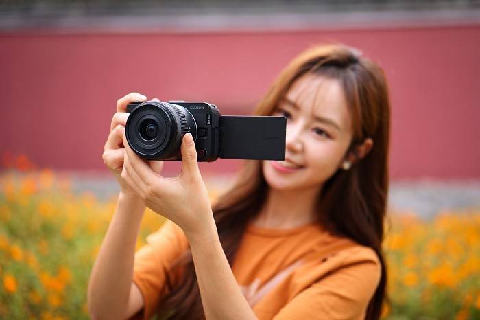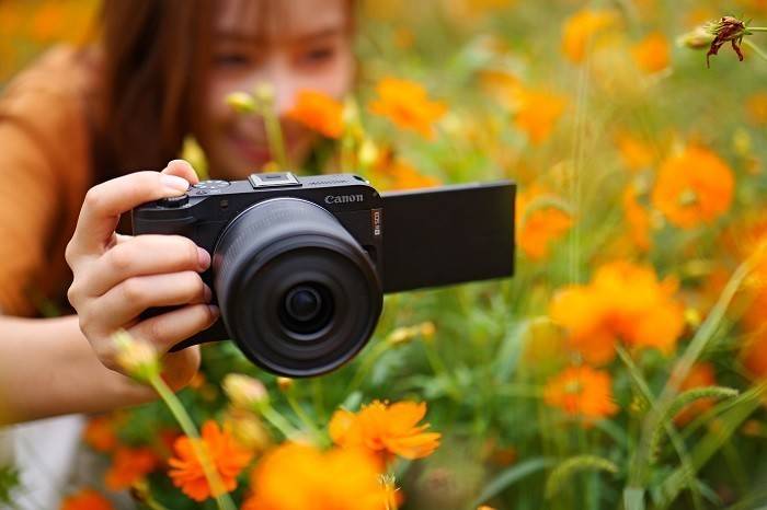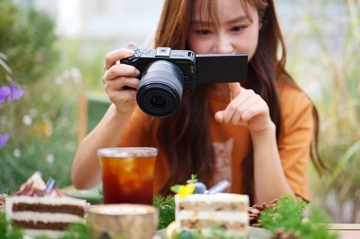 佳能R50 V 的操作界面设计非常符合现代创作者的需求,机身正面与顶部的按钮布局简洁明了,大大减少了操作的复杂性。尤其在拍摄 Vlog 或直播时,顶部和正面大尺寸的视频录制按钮让操作变得更加直观,轻轻一按便可启动视频拍摄,避免了繁琐的步骤,提升了拍摄的灵活性。