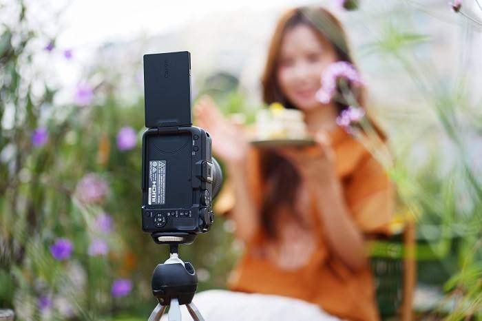 而配备的3.0英寸可翻转式触摸屏,它不仅支持触摸操作,还能翻转到前方,方便自拍和竖屏拍摄。尤其是在胡同咖啡厅里拍摄短时,竖屏状态下拍摄可直接通过侧面的竖拍1/4螺口把相机固定到脚架上,创作更加自由,轻松应对短视频创作中的各种需求。