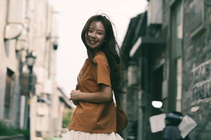 值得一提的是,除了强大的硬件性能,EOS R50 V还为拍摄创作提供了14种创意色彩,让每一个画面都充满个性与氛围感。在胡同和咖啡厅的拍摄中,我非常喜欢“故事青橙”,画面呈现出复古又温暖的色调,模特与咖啡厅内的环境相映成趣,更增添了一份文艺感。