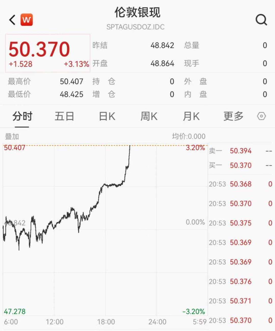 现货白银首次升破50美元/盎司整数关口,刷新历史纪录