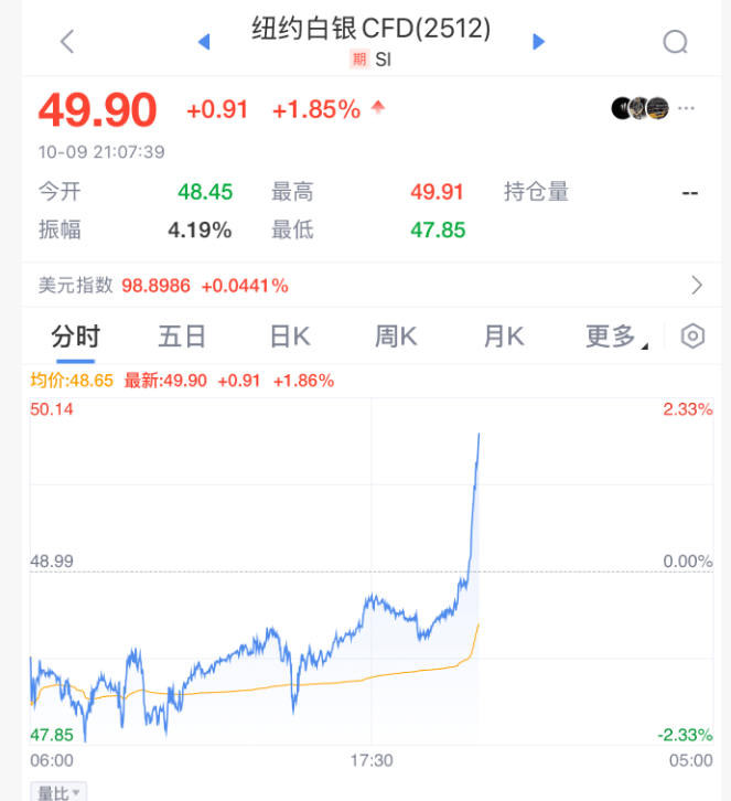 10月9日晚间,受避险需求飙升与伦敦现货市场供应趋紧的双重推动,现货白银价格跃升至数十年来新高。