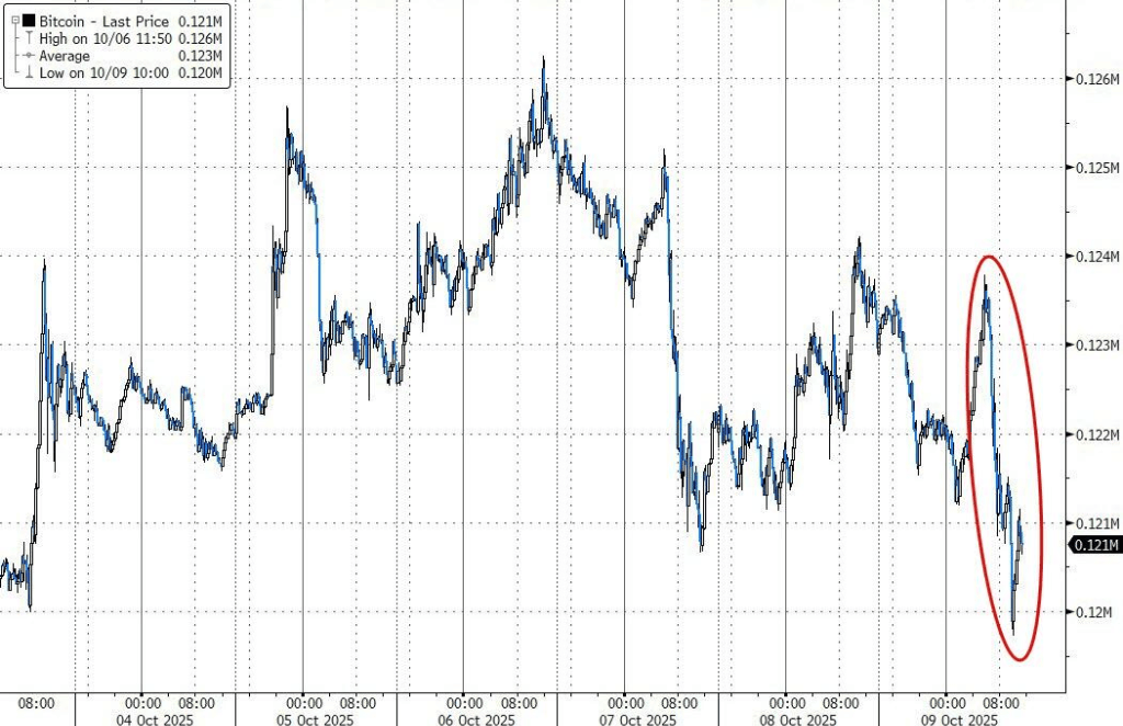 (隔夜比特币反弹失败,较日高一度下挫约3.3%)