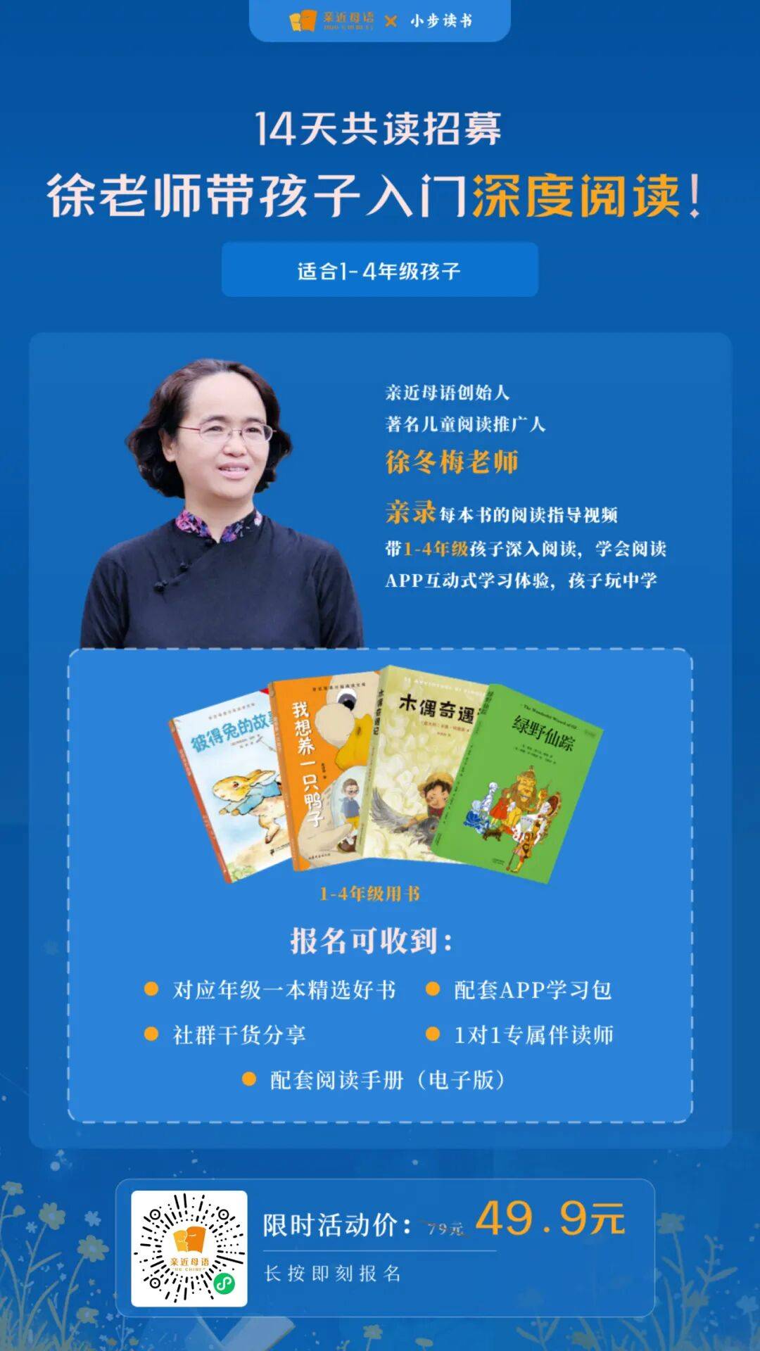 我们正式邀请1-4年级的小书友们,和小步读书一起挑战用14天的时间来培养可以让孩子终身受益的阅读好习惯,跟着亲近母语创始人徐冬梅老师一起入门深度阅读。