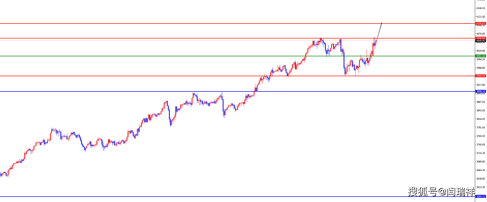 从多周期分析,首先观察月线节奏,从长线上看3130位置是长线走势的分水岭,价格在此位置之上长线多对待即可。从周线级别看,目前周线多空分水岭于3585位置,价格在此位置之上中线多对待即可。从日线级别看,暂时需要关注3898区域支撑,此位置之上波段多对待。从四小时上看,在上周五日内如期按照我们分析的区间运行,同时在收盘突破四小时阻力,所以今日早盘再度飙升,短线看今日早盘低点位置就是短期分水岭,价格在此位置之上持续看延续,只有跌破后才会修正。一小时上看目前黄金多头还在延续中,所以暂时依托早盘低点继续看延续即可,上方关注4070-4100区域。