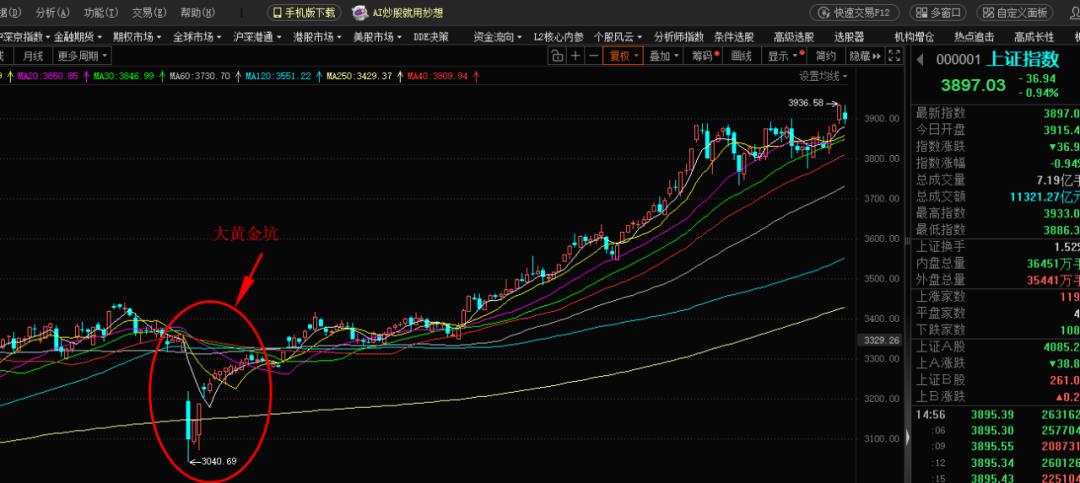 国庆后的第一个交易日,10月9日,大盘直接突破了3900点,创出了新高3936点。