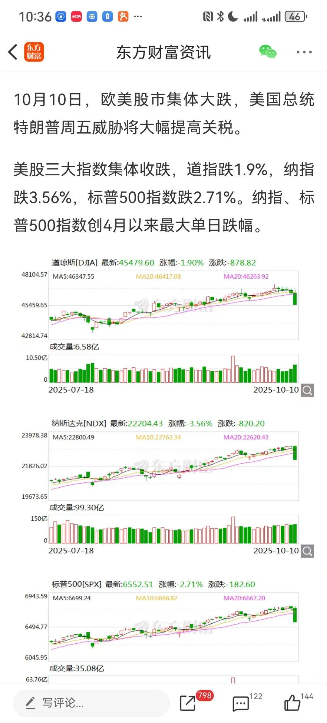 不就是加征100%关税么,4月份的时候加征过了啊,特朗普当时的行为让A股大盘单日暴跌7.3%,砸出了一个数千股跌停,但随后被证明是大黄金坑,自那一天开始到现在,好多股票价格都翻倍了。