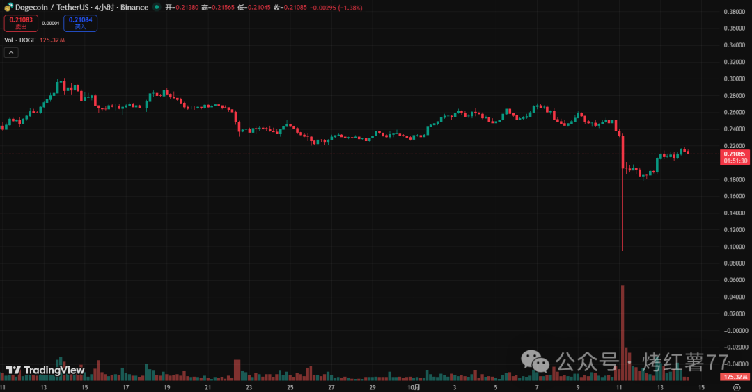 刚刚过去的这个周末,狗狗币(DOGE)用一场惊心动魄的“V型反转”表演,再次证明了其作为加密货币市场情绪风向标的地位。在经历从0.25美元高台跳水至0.10美元以下的断崖式下跌后,这枚备受瞩目的表情包币在短短几分钟内上演绝地反击,强势回升至0.21美元附近,日内涨幅超过12%,交易量激增30%。
