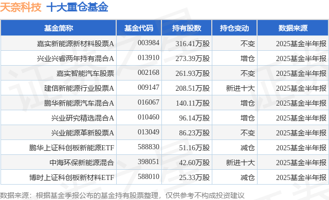 根据2025基金半年报公募基金重仓股数据,重仓该股的公募基金共20家,其中持有数量最多的公募基金为嘉实基金的嘉实新能源新材料股票A。嘉实新能源新材料股票A目前规模为20.59亿元,最新净值2.6537(10月13日),较上一交易日上涨0.84%,近一年上涨73.39%。该公募基金现任基金经理为姚志鹏 熊昱洲。姚志鹏在任的基金产品包括:嘉实智能汽车股票,管理时间为2016年4月30日至今,期间收益率为182.89%;嘉实环保低碳股票,管理时间为2018年3月21日至今,期间收益率为101.45%;嘉实产业先锋混合A,管理时间为2020年7月21日至今,期间收益率为13.94%。熊昱洲在任的基金产品包括:嘉实新优选混合,管理时间为2021年8月26日至今,期间收益率为-10.79%;嘉实产业先锋混合A,管理时间为2022年7月13日至今,期间收益率为15.16%;嘉实全球创新龙头股票(QDII)人民币A,管理时间为2023年3月14日至今,期间收益率为39.06%。