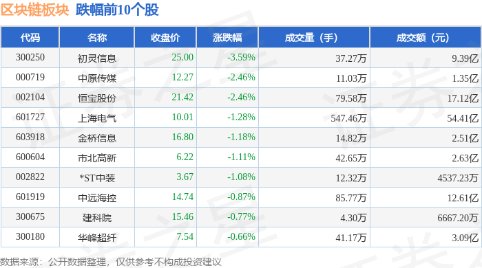 证券之星消息,10月15日区块链板块较上一交易日上涨1.28%,久其软件领涨。当日上证指数报收于3912.21,上涨1.22%。深证成指报收于13118.75,上涨1.73%。区块链板块个股涨跌见下表: