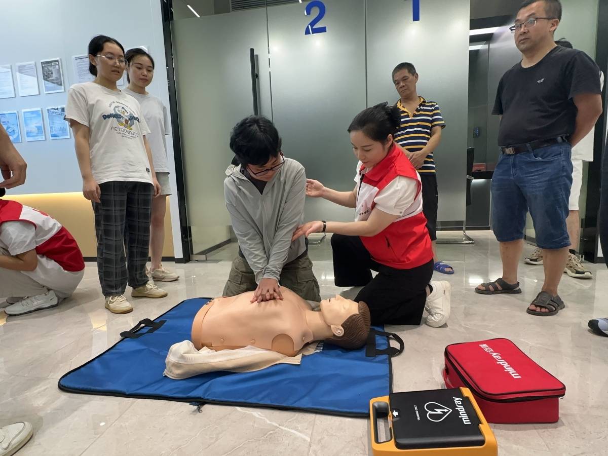 培训中,培训师系统讲解了红十字会的起源与发展,详细阐述了各类应急救护场景的应对原则,并重点聚焦心肺复苏(CPR)与自动体外除颤器(AED)的操作流程及核心要领。在模拟实操环节,培训师通过生动的现场演示,对每位员工进行细致指导,确保急救动作规范精准。