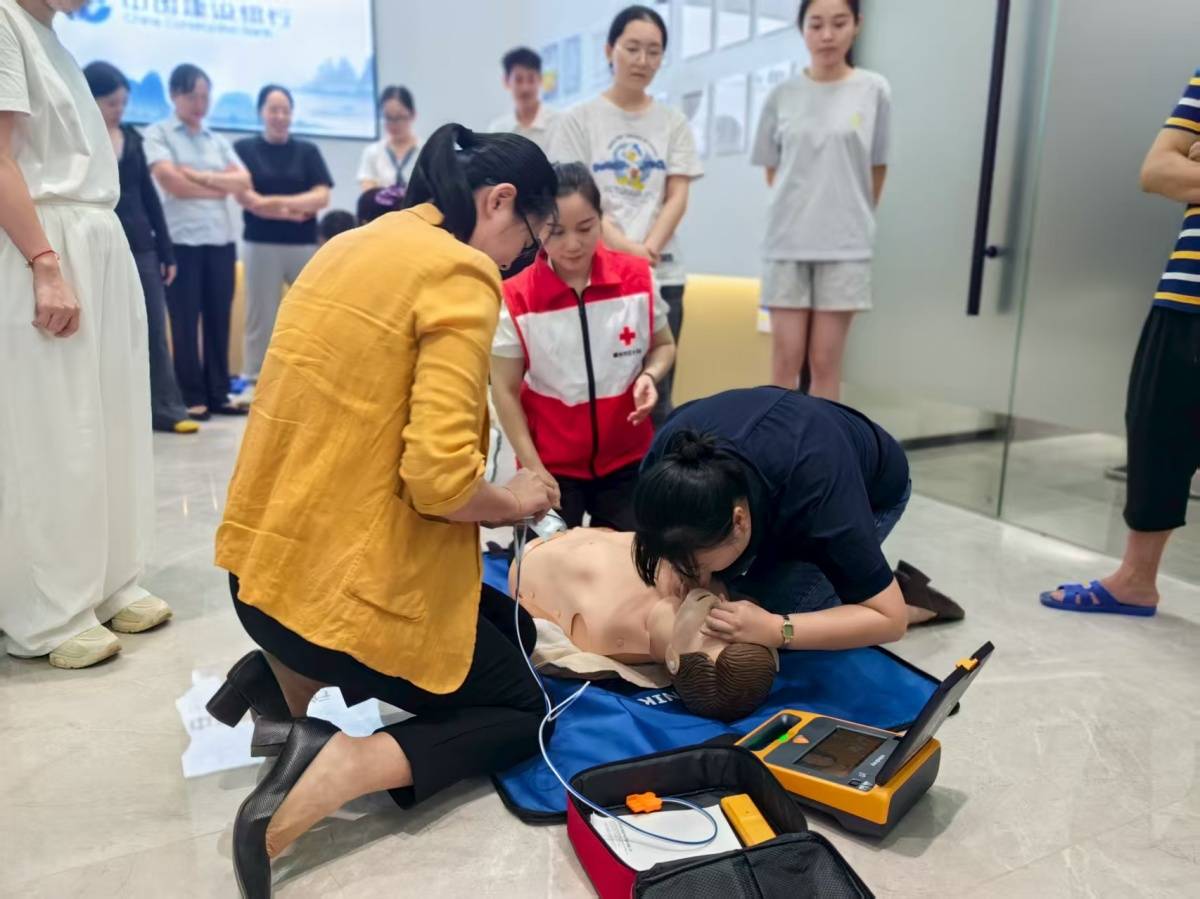 “老年客户是银行服务的重要对象,网点日常接待的中老年人比例较高,而这部分人群正是心脑血管疾病的高发人群。”建设银行鹿寨支行网点负责人表示,“我们开展全员培训,旨在提升员工面对突发事件的现场处置能力。一旦客户,特别是老年客户,或在网点周边社区有需要的人士发生紧急情况,我们能第一时间提供救援,牢牢把握宝贵的‘黄金4分钟’急救时间。”