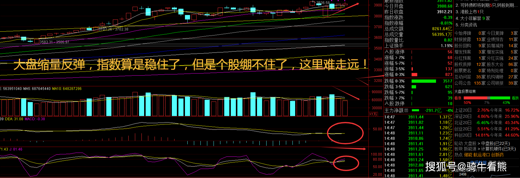 A股市场有一个特点就是“保卫战”,3600点保卫战、3700点保卫战、3800点保卫战、3900点保卫战等等,你突然会发现今年行情就是“保卫战行情”,每上100点都很艰难,这与去年924的“牛犇”行情是决然不同的。骑牛看熊认为目前已经进入到牛市后期阶段,一些个股已经提前下行跌回原点,1元股的数量开始增多,再加上一些高位股的股东开始大幅度抛售,特别是中美问题再度“升级”,现在做盘的难度会比之前难很多。现阶段还是谨慎为上,等待调整结束后的新机会,现在最大的利好是:“机构高位还没有大幅度减仓!你还可以扛一下!”