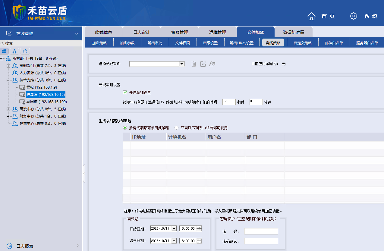 (4)离线管控:员工出差外带电脑可设有效期,过期自动锁死,保障出差、展会等场景安全。