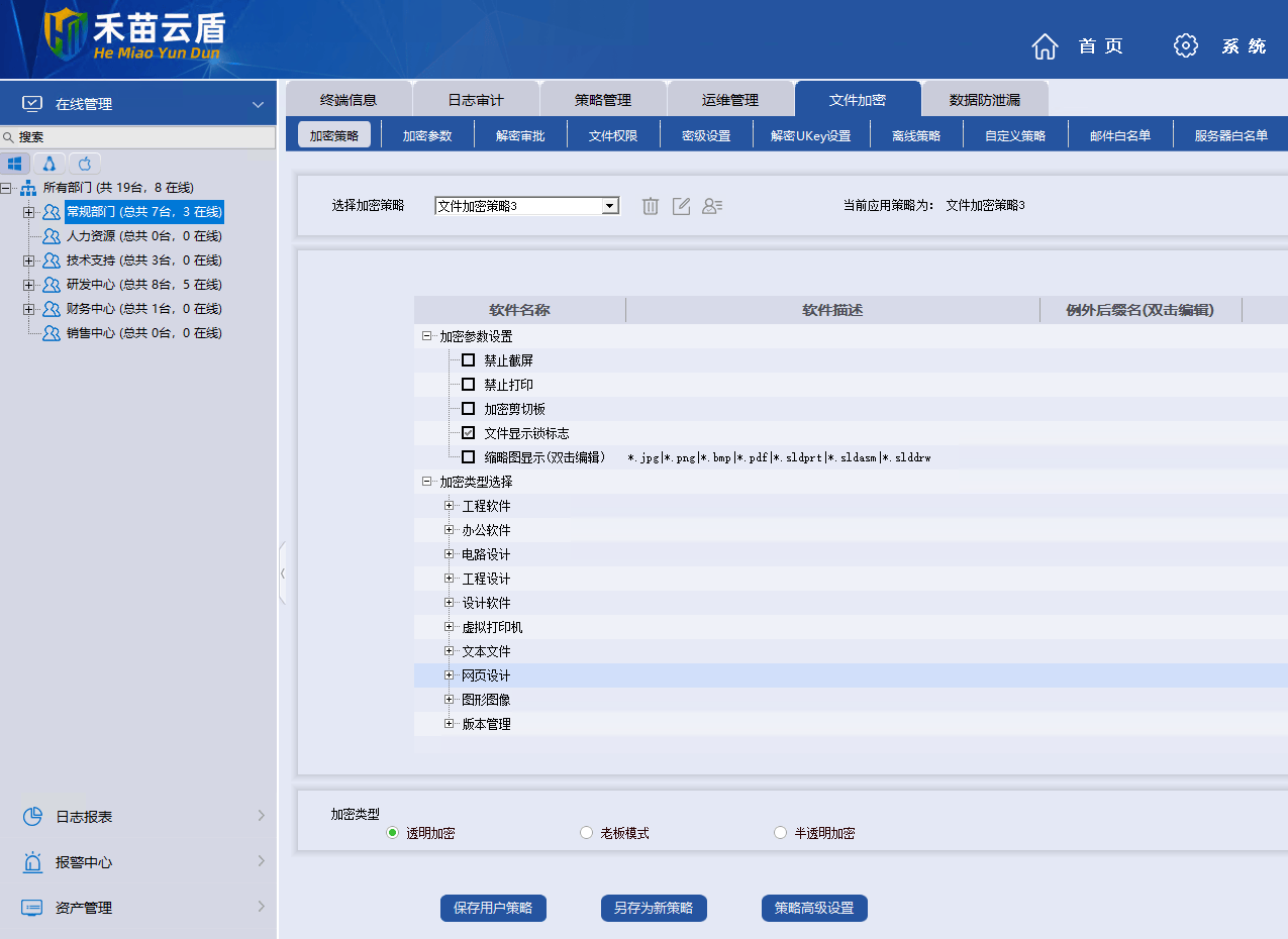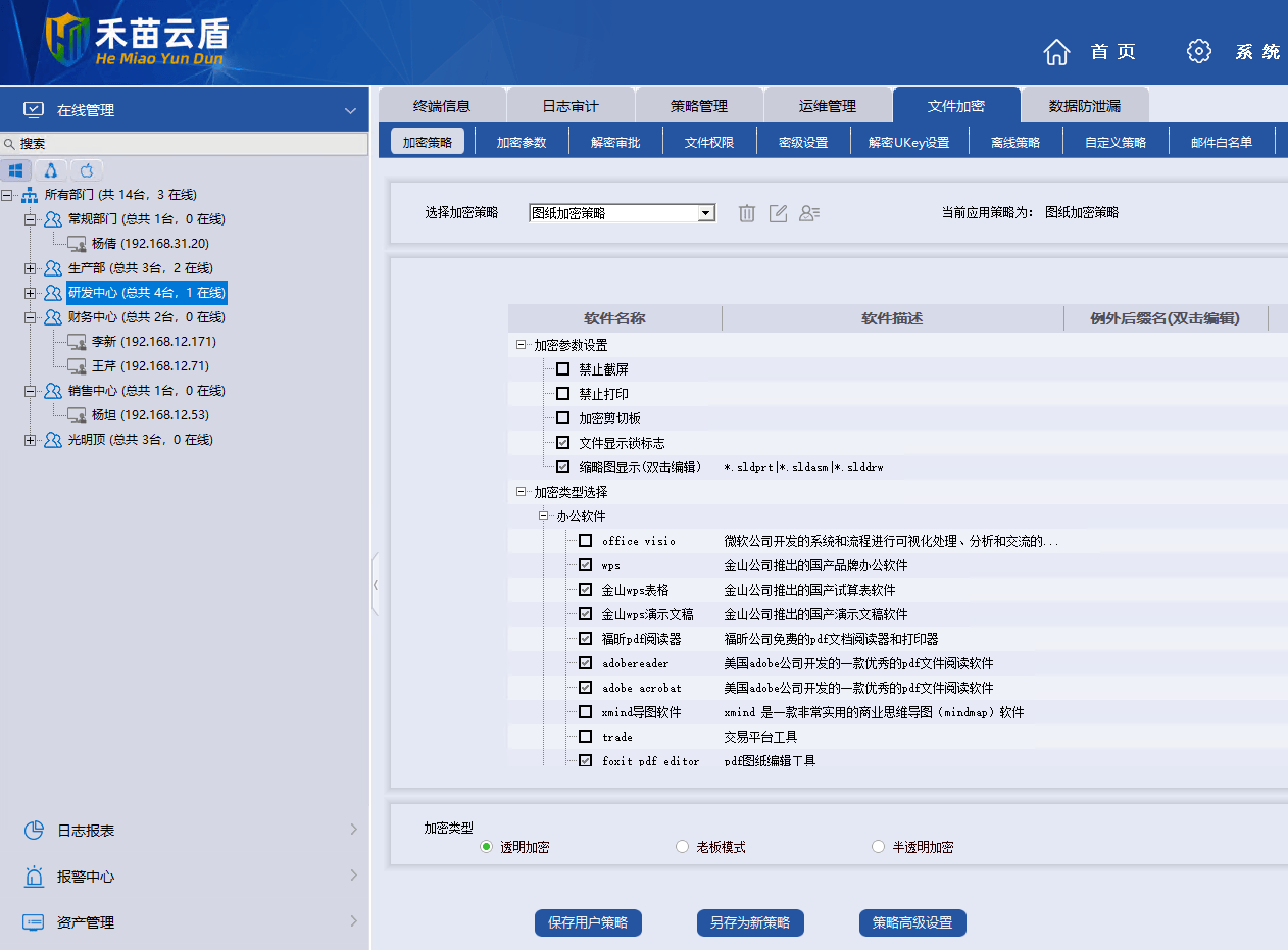 (1)透明加密 + 落地加密:文件在终端创建、编辑、保存时自动加密,即使复制到U盘或通过微信发送,非授权设备也无法打开。