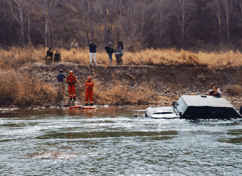 2023年3月,北京密云,两辆越野车开到潮河边,不料车辆滑入河内,瞬间被湍急的河水淹没大半,导致车内三人被困。所幸消防员及时赶到,三人全部安全上岸。