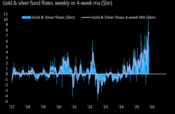 不过,根据美银的数据,过去10周黄金ETF净流入达342亿美元,创历史最高纪录。