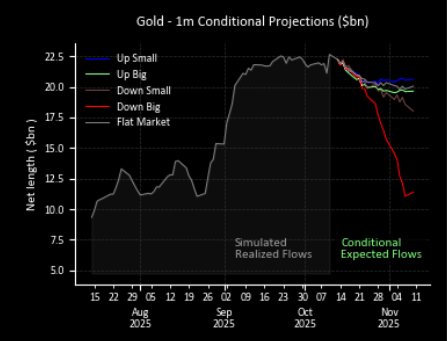 量化策略方面显示极端状态。花旗指出,商品交易顾问基金(CTAs)正维持着对黄金的最高多头敞口。这意味着一旦价格逆转,程序化的抛售可能会放大跌幅。