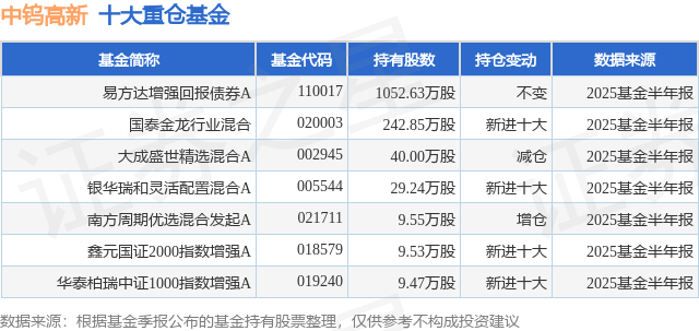 根据2025基金半年报公募基金重仓股数据,重仓该股的公募基金共7家,其中持有数量最多的公募基金为易方达基金的易方达增强回报债券A。易方达增强回报债券A目前规模为225.95亿元,最新净值1.401(10月20日),较上一交易日上涨0.0%,近一年上涨5.3%。该公募基金现任基金经理为王晓晨。王晓晨在任的基金产品包括:易方达投资级信用债债券A,管理时间为2013年9月10日至今,期间收益率为76.16%;易方达裕祥回报债券A,管理时间为2022年4月30日至今,期间收益率为18.48%;易方达安泽180天持有期债券A,管理时间为2024年1月24日至今,期间收益率为4.87%。