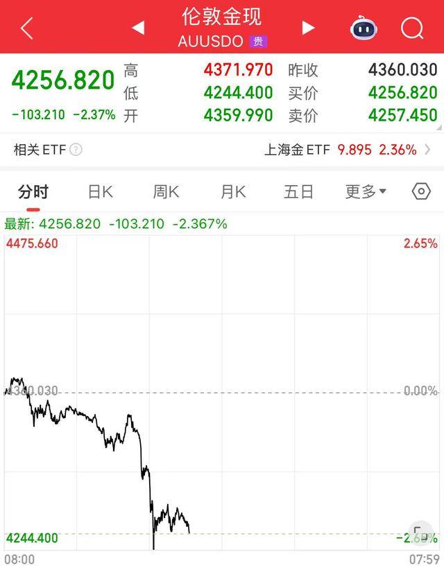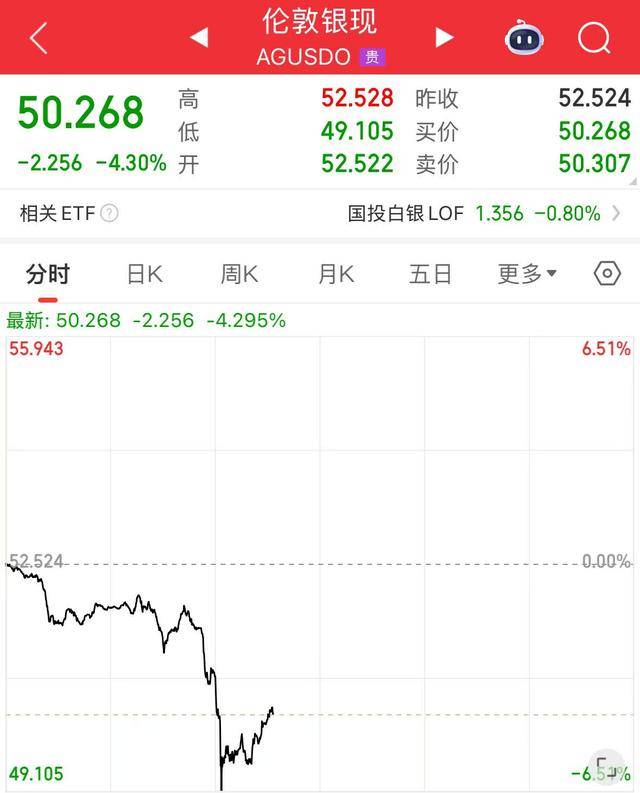 10月21日,国际贵金属价格跳水,现货黄金失守4300美元关口,日内跌超2%。现货白银跌破50美元/盎司,为10月10日以来首次,日内跌超5%。现货白银曾于10月17日创下54.49美元/盎司的历史最高价。截至发稿,伦敦金现报4256.82美元/盎司;伦敦银现报50.268美元/盎司。