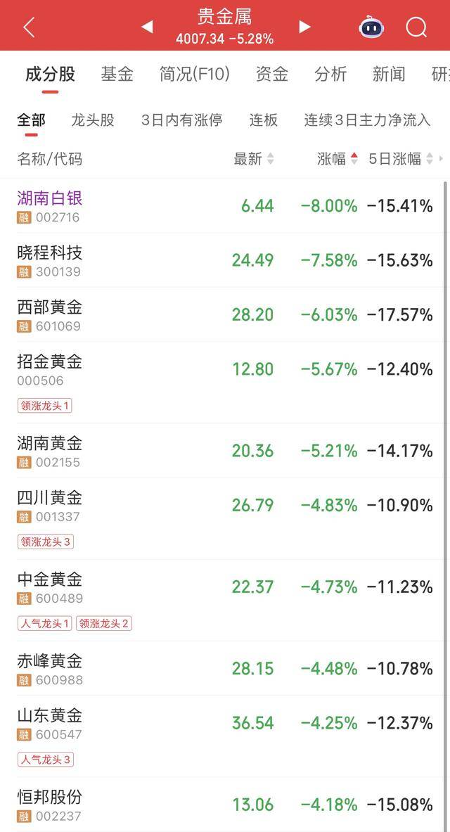 A股方面,10月22日,贵金属板块集体低开,湖南白银竞价跌停,西部黄金、中金黄金、晓程科技低开超9%,中金黄金、山金国际等跟跌。