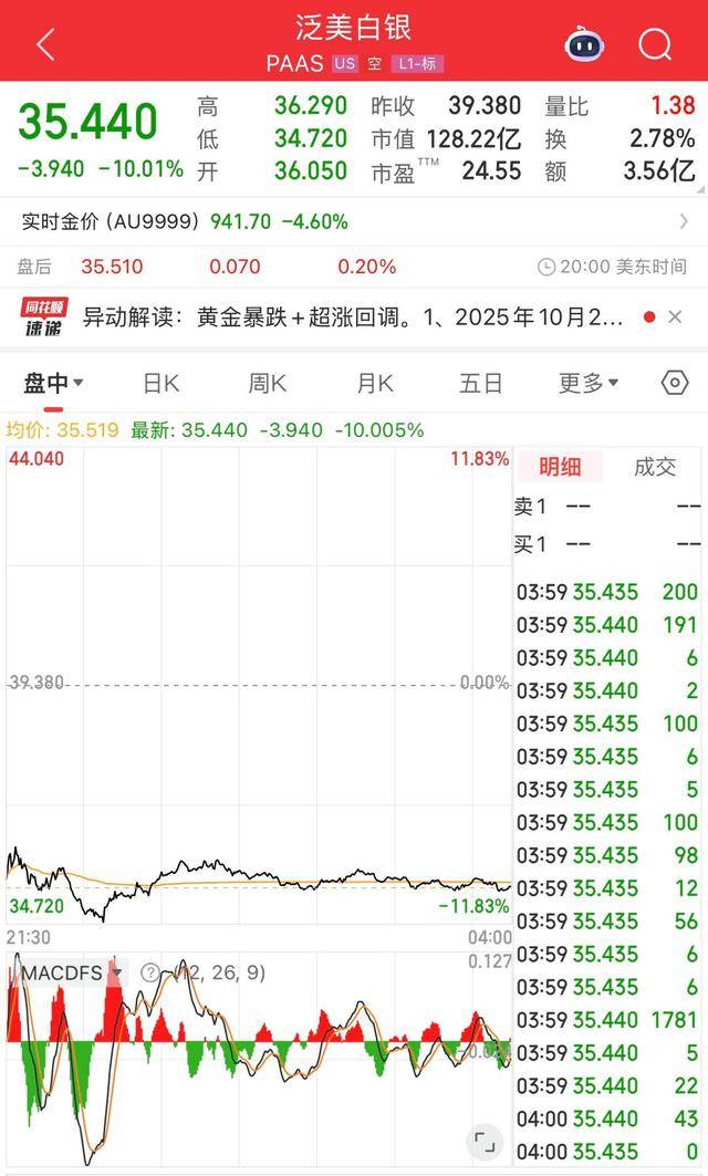 黄金股方面,哈莫尼黄金(HMY.N)跌超10%,盎格鲁黄金(AU.N)跌超11%,金罗斯黄金(KGC.N)跌逾11%;白银股方面,赫克拉矿业(HL.N)跌超11%,First Majestic(AG.N)跌超11%,泛美白银(PASS.N)跌超10%。