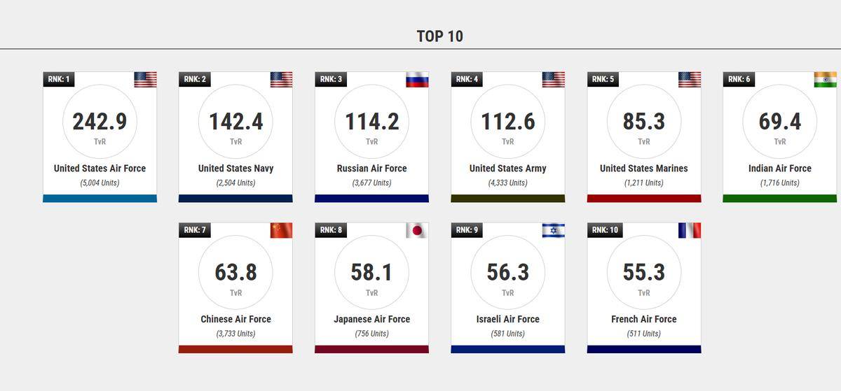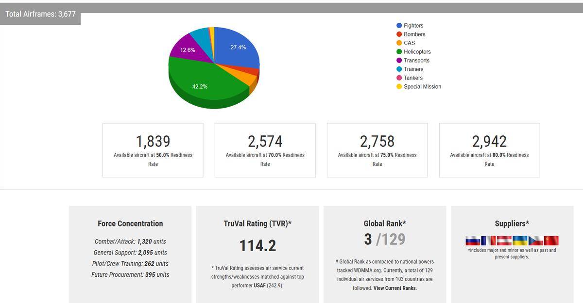 最近,美国智库“世界现代军用飞机名录”发布了最新的全球空军实力排名。这份排名通过一个被称为“TruVal 评级”的综合参数对各国空军进行了评估,并将美国和俄罗斯空军排在了全球前两位,印度紧随其后,中国排在印度之后。