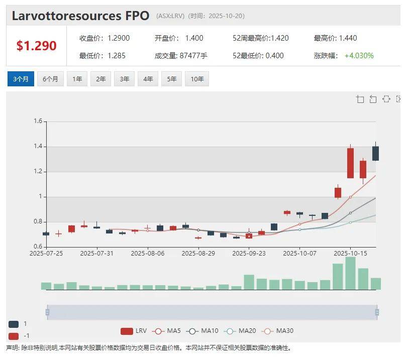 截至 10 月 17 日收盘价 0.091 澳元,相较定增价上涨近 7 倍,定增参与资金账面浮盈约 6 倍。