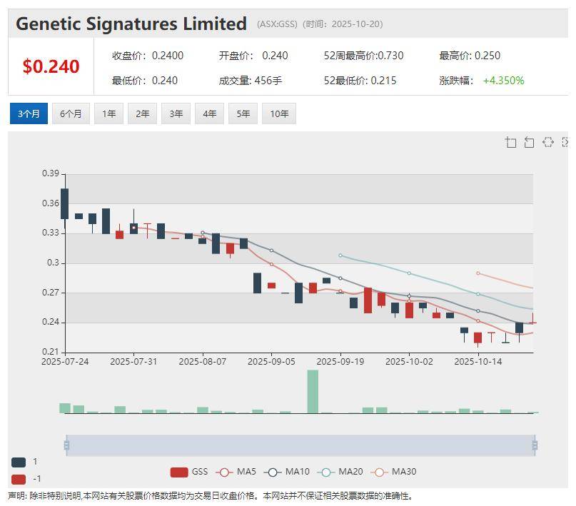 分子诊断(MDx)生物科技公司Genetic Signatures Ltd (ASX股票代码:GSS)发布靓丽季报,股价应声暴涨58.33%。