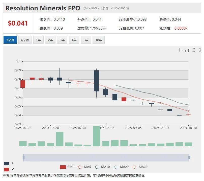 澳华财经在线数据库显示,RML最新价0.115澳元,已发行股本18亿股,市值2.07亿澳元。