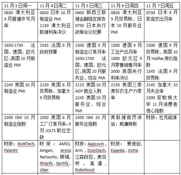 下周欧元区经济数据发布相对平淡,周一将发布西班牙、意大利、法国、德国及欧元区10月制造业PMI终值,周三将发布上述国家及地区的服务业PMI终值。德国将于周三发布9月工厂订单数据,周四发布9月工业产出数据;法国将于周三发布9月工业生产数据,欧元区9月零售销售数据将于周四发布。