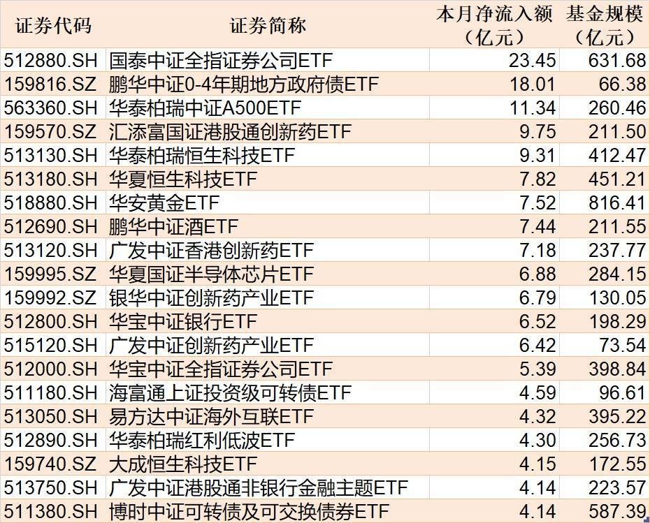 截至11月4日,本月资金净流入额居前20的ETF名单如下: