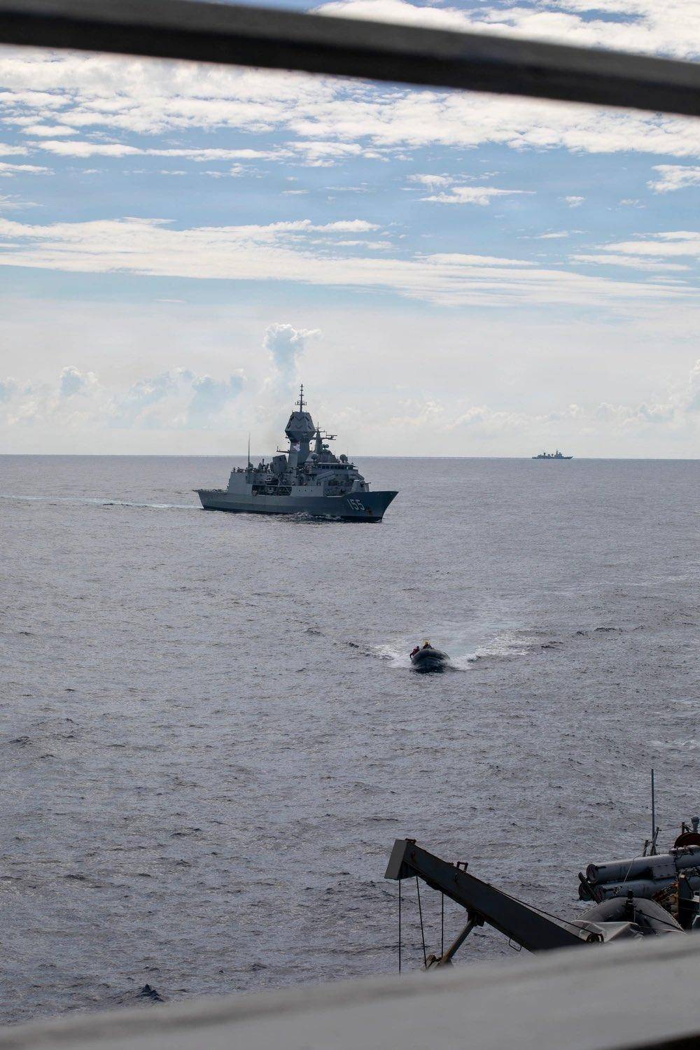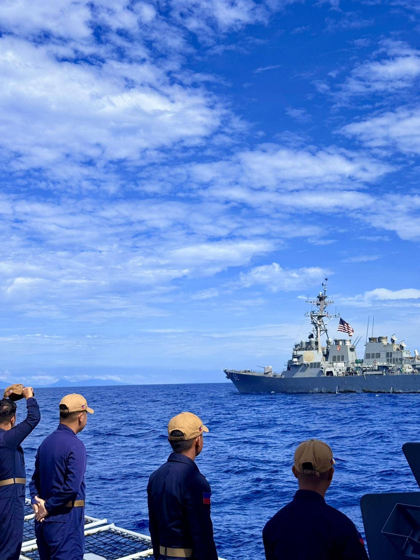 对于这一次海上军演,美国海军出动了菲茨杰拉德号驱逐舰,澳大利亚海军巴拉特纳号护卫舰,新西兰海军奥特亚罗瓦号补给舰,菲律宾海军何塞·黎刹号护卫舰,并且还有美国海军尼米兹号航母在黄岩岛附近坐镇,就是那艘刚刚在南海,损失两架舰载机,海鹰直升机,F/A-18E/F“超级大黄蜂”舰载机的尼米兹号航母。此外还包括菲律宾空军出动A-29B超级巨嘴鸟、C208B侦察机等。中国海军舰队距离美澳新菲舰艇,最近距离为3海里。而菲律宾何塞·黎刹号护卫舰军官安德烈斯中校叫嚣:“如果我们遇到外国入侵,一定会予以反击”。