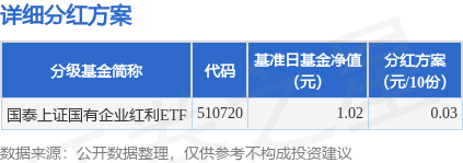 证券之星消息,11月10日发布《国泰上证国有企业红利交易型开放式指数证券投资基金第19次分红公告》。本次分红为2025年度第十一次分红。。公告显示,本次分红的收益分配基准日为11月11日,详细分红方案如下: