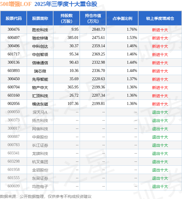 根据2025基金Q3季报公募基金重仓股数据,重仓该股的公募基金共4家,其中持有数量最多的公募基金为西部利得基金的500增强LOF。500增强LOF目前规模为12.97亿元,最新净值1.9028(11月7日),较上一交易日下跌0.24%,近一年上涨18.94%。该公募基金现任基金经理为盛丰衍。盛丰衍在任的基金产品包括:西部利得沪深300指数增强A,管理时间为2018年1月26日至今,期间收益率为77.62%;西部利得国企红利指数增强A,管理时间为2018年7月11日至今,期间收益率为148.68%;西部利得量化成长混合A,管理时间为2019年3月19日至今,期间收益率为193.48%。