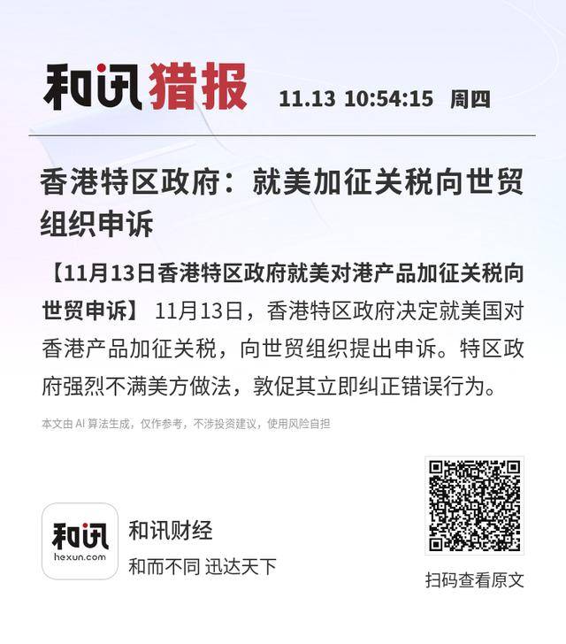 【11月13日香港特区政府就美对港产品加征关税向世贸申诉】11月13日,香港特区政府决定就美国对香港产品加征关税,向世贸组织提出申诉。特区政府强烈不满美方做法,敦促其立即纠正错误行为。