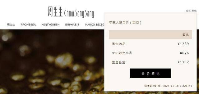 受此影响,国内品牌金饰价格也随之下调。查询发现,国内有品牌金饰价格从14日开始已实现四连跌。其中,周生生足金饰品报1289元/克,较前一日1305元下跌16元/克;周大福足金饰品报1288元/克,较昨日下跌17元/克;老庙黄金足金饰品报1276元/克,较前一日1289元/克下跌13元/克,较13日高点1325元/克下跌49元/克,已实现四连跌;老凤祥足金饰品报1285元/克,较前一日1293元/克下跌8元/克,较13日高点1325元/克下跌40元/克,也已四连跌。