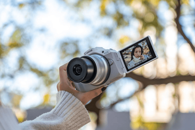 佳能EOS R50的侧向翻转可触控屏幕