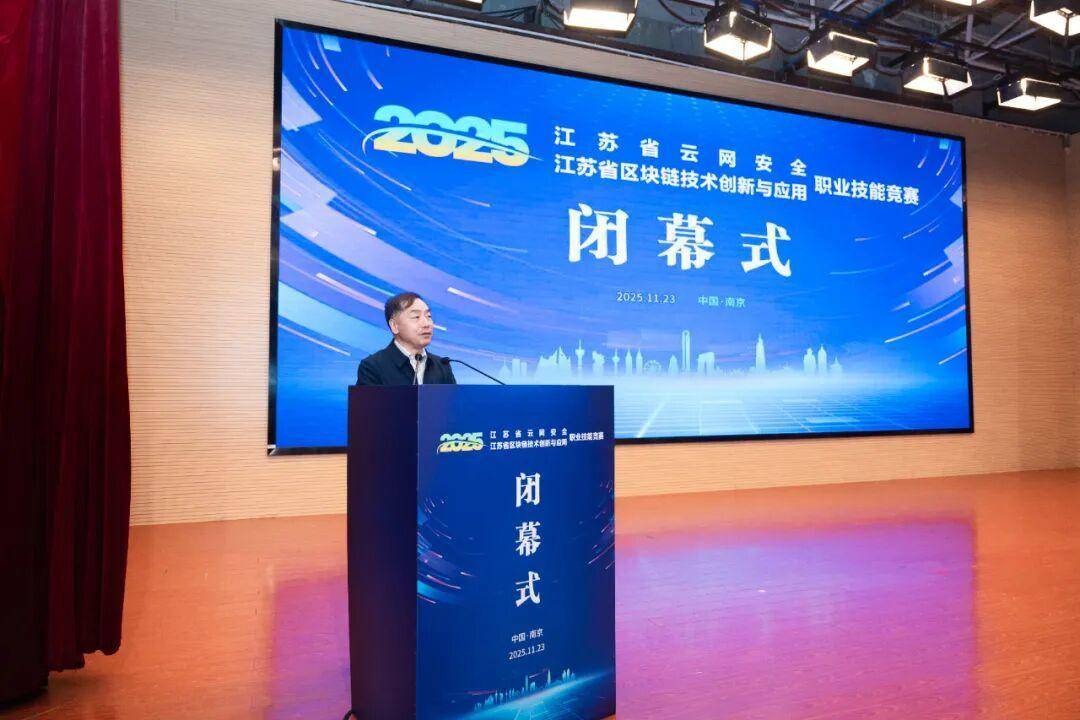 闭幕式上,省通信管理局党组书记、局长,省区块链发展协会理事长许继金出席并发表讲话,南京信息职业技术学院党委书记孔捷致欢迎辞。省委网信办副主任赵明为一等奖选手代表颁发奖项,省委网信办、省工业和信息化厅、省数据局、省通信管理局和省总工会有关处室负责同志等颁发二、三等奖和优秀组织奖。省区块链发展协会秘书处负责同志宣读竞赛获奖名单,省区块链发展协会党支部书记、执行秘书长司方来主持闭幕式。