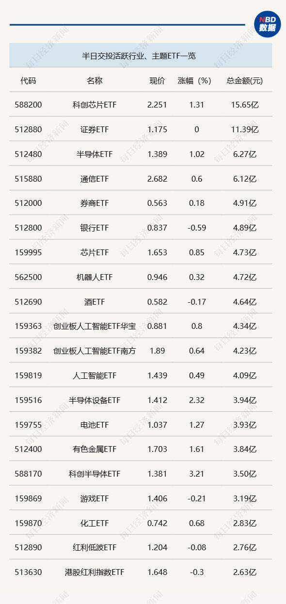 行业ETF风向标丨跨境ETF交投遇冷,3只科创半导体ETF半日涨幅超3%