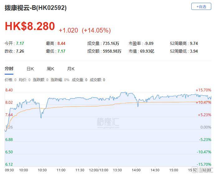 拨康视云-B涨超14%,近6日连涨超70%,股价站上8港元大关,市值69.93亿港元。