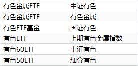 市场6只“有色金属”概念的ETF以及跟踪的指数