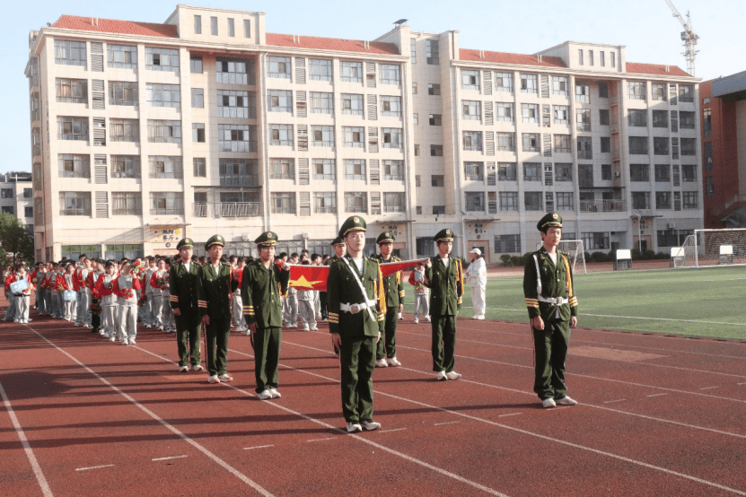 开幕式上,国旗护卫队庄严护旗入场,各学校参赛队员身着统一队服,依次入场。