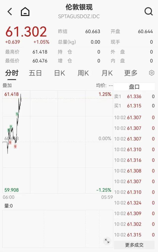 现货白银升破60美元/盎司