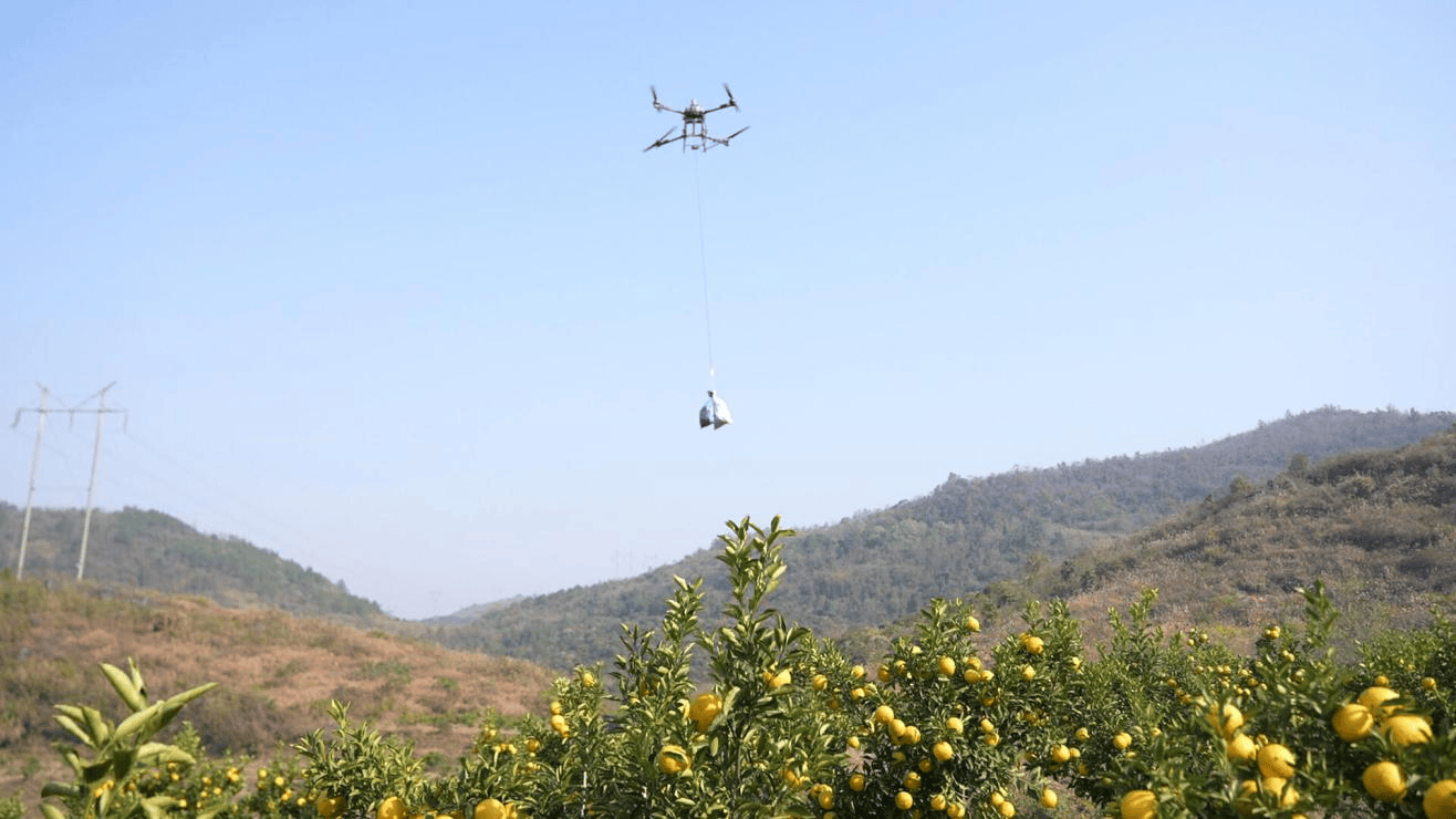 “以前全靠人工挑运果子,一天下来采收量十分有限。如今基地配备了两台无人机,单台无人机每趟运输只需20秒,就能运送100多斤果子,两台无人机一天可完成约4万斤的运输任务,采收效率实现质的飞跃。”基地负责人王涛笑着说。